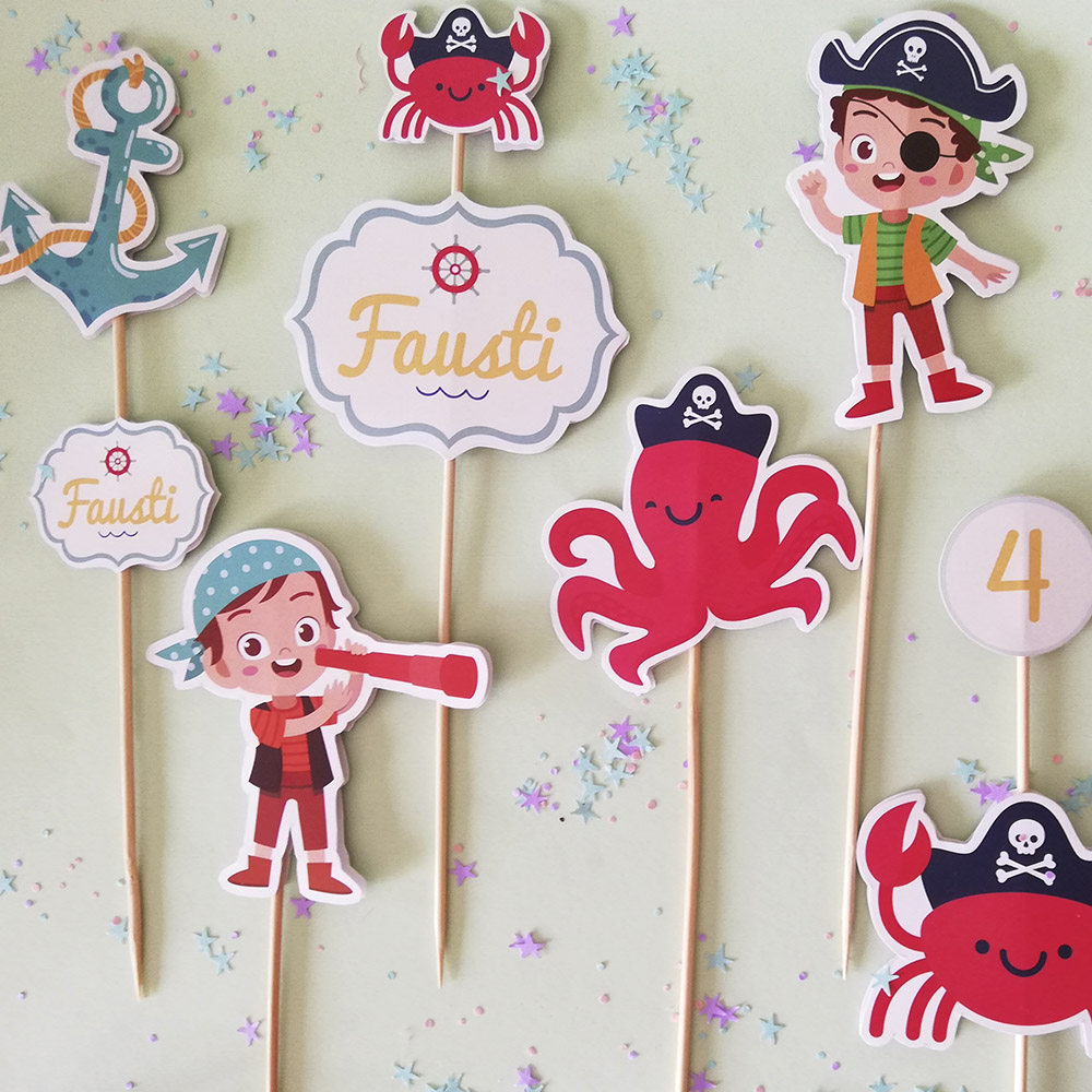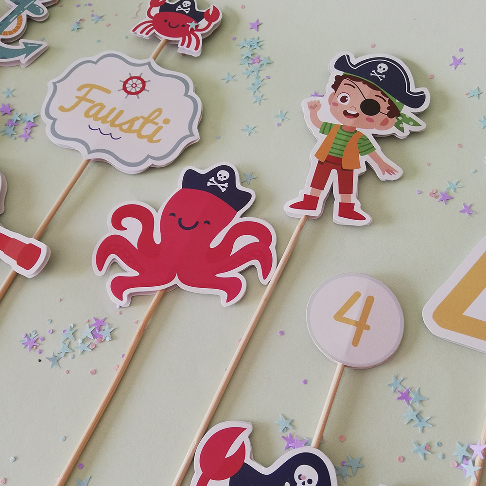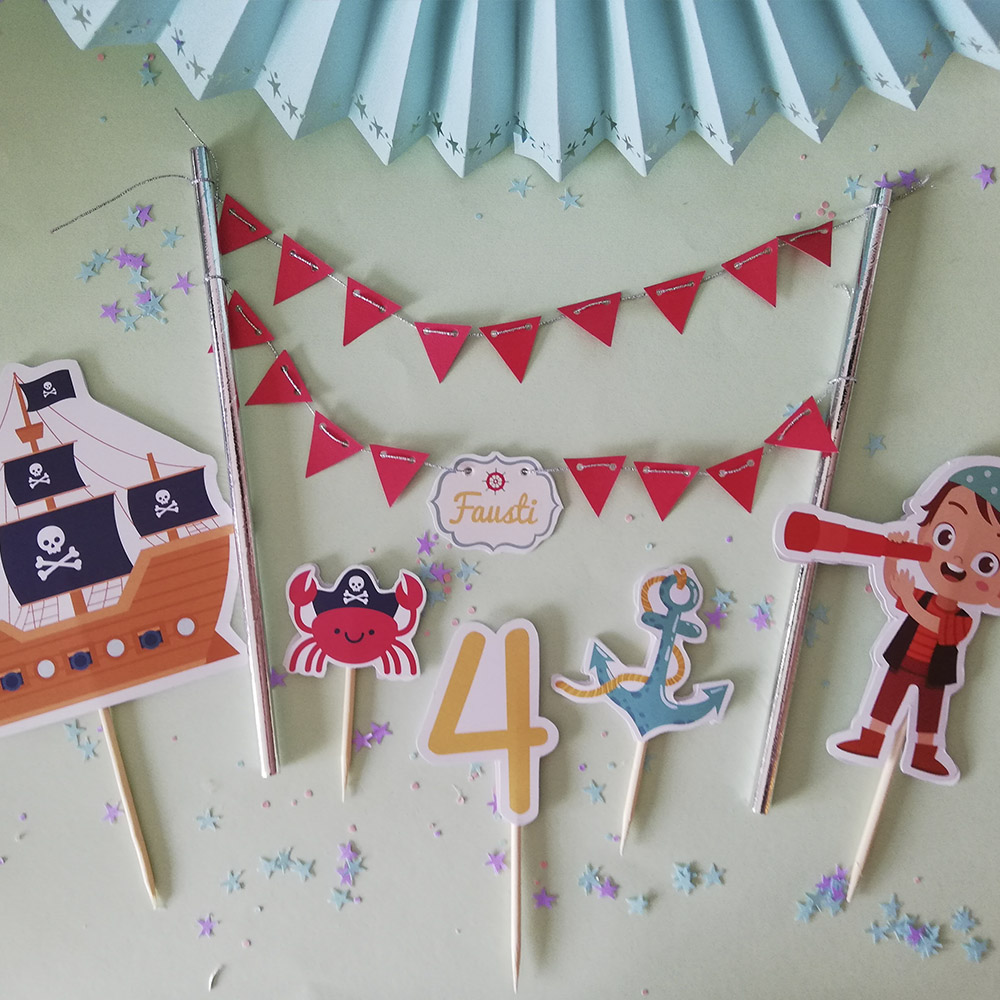 Deco torta personalizada, viene con un banderín con el nombre del cumpleañer@, pinches con diseño y 1 vela con 2 bengalas.