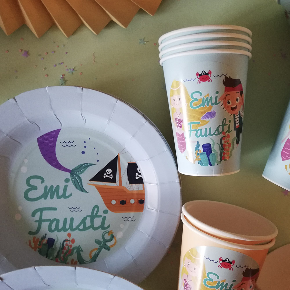 Para la mesa: Vasos, sorbetes y platos personalizados.