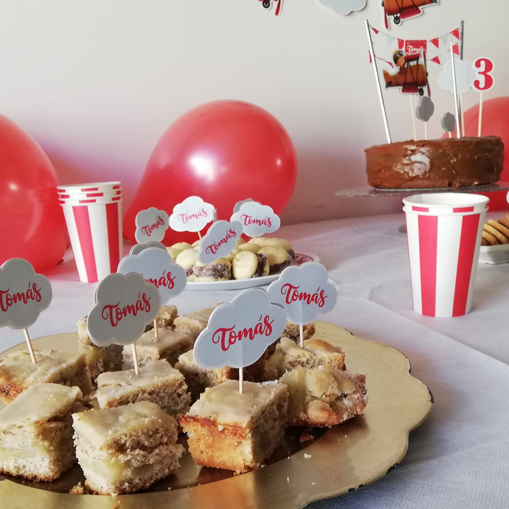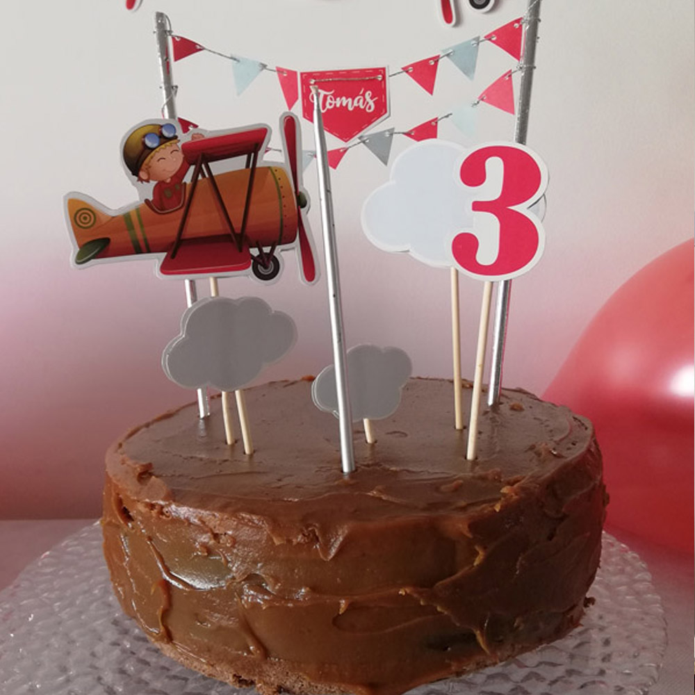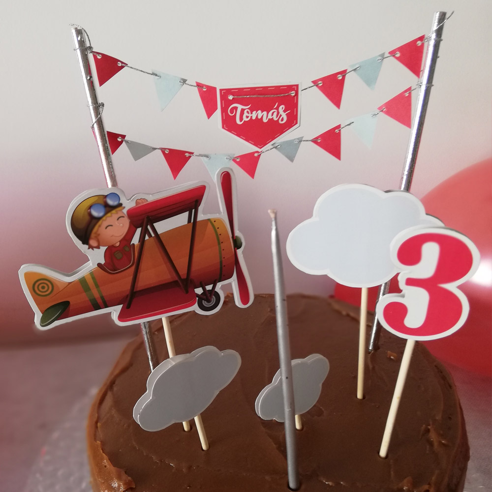 Deco torta personalizada, viene con un banderín con el nombre del cumpleañer@, pinches con diseño y 1 vela con 2 bengalas.