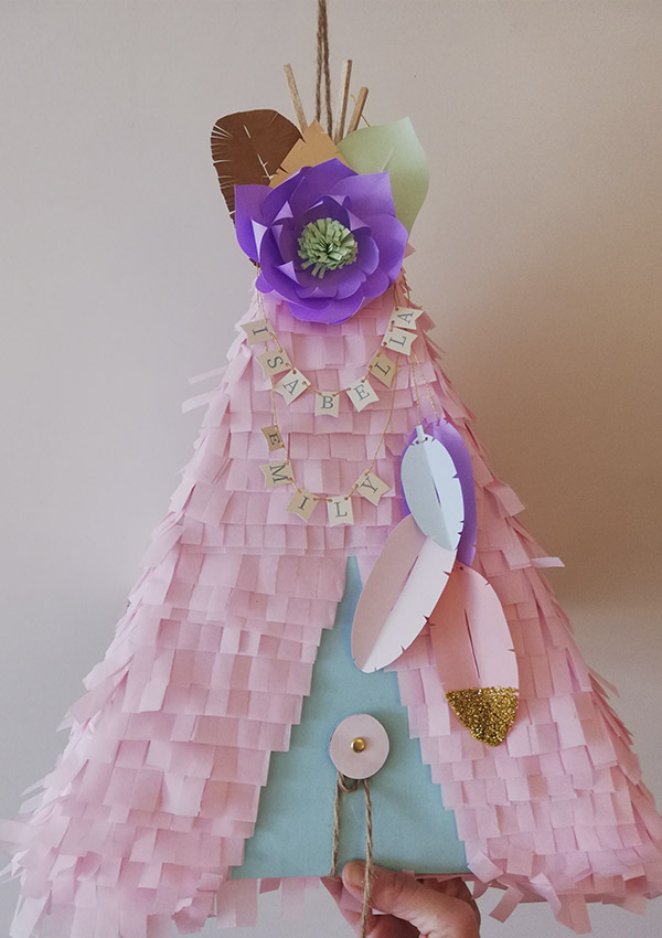 Delicada piñata estilo boho. Medidas: 44x 35x35cm.